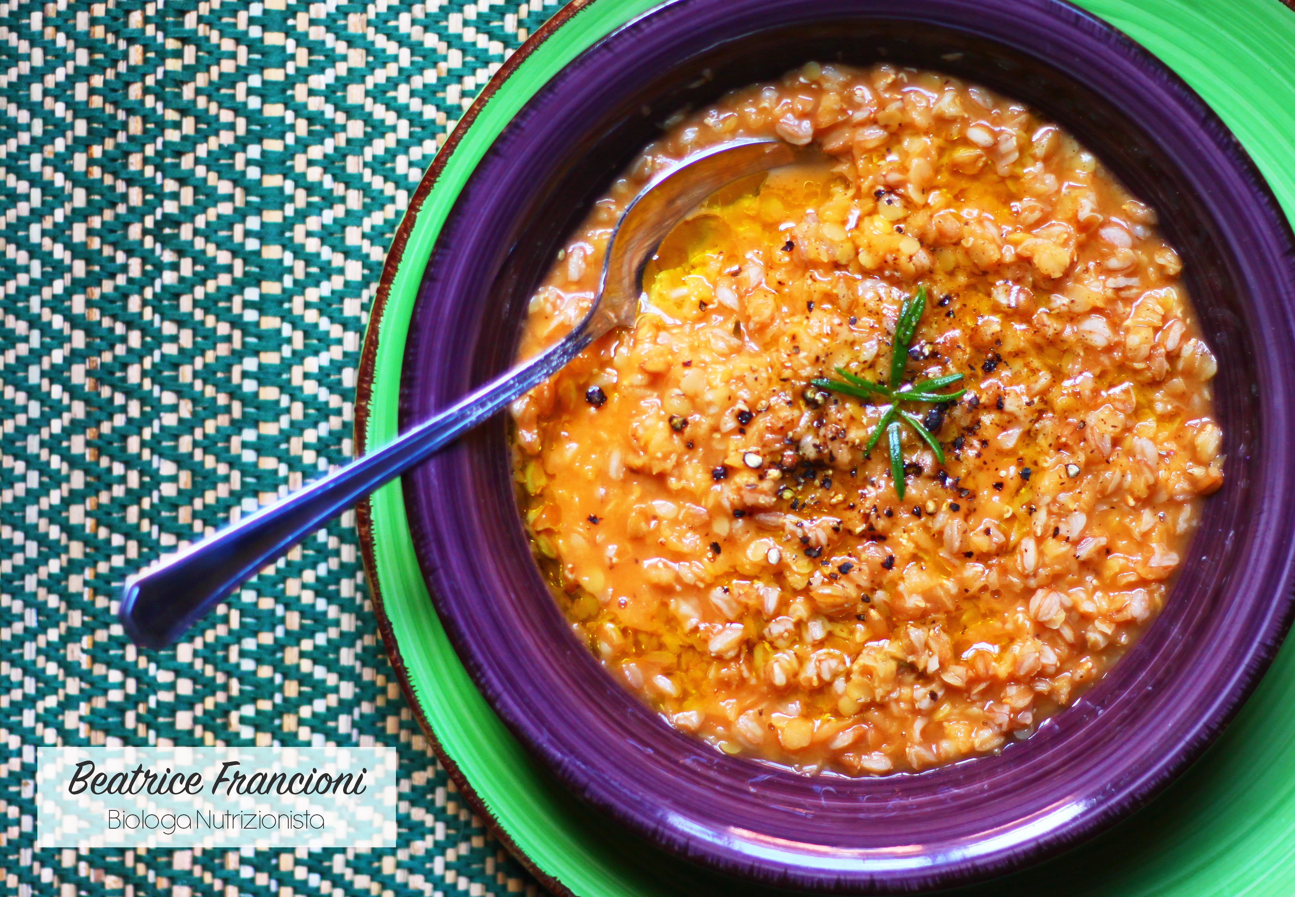 💟Minestra di farro e lenticchie rosse decorticate💟
