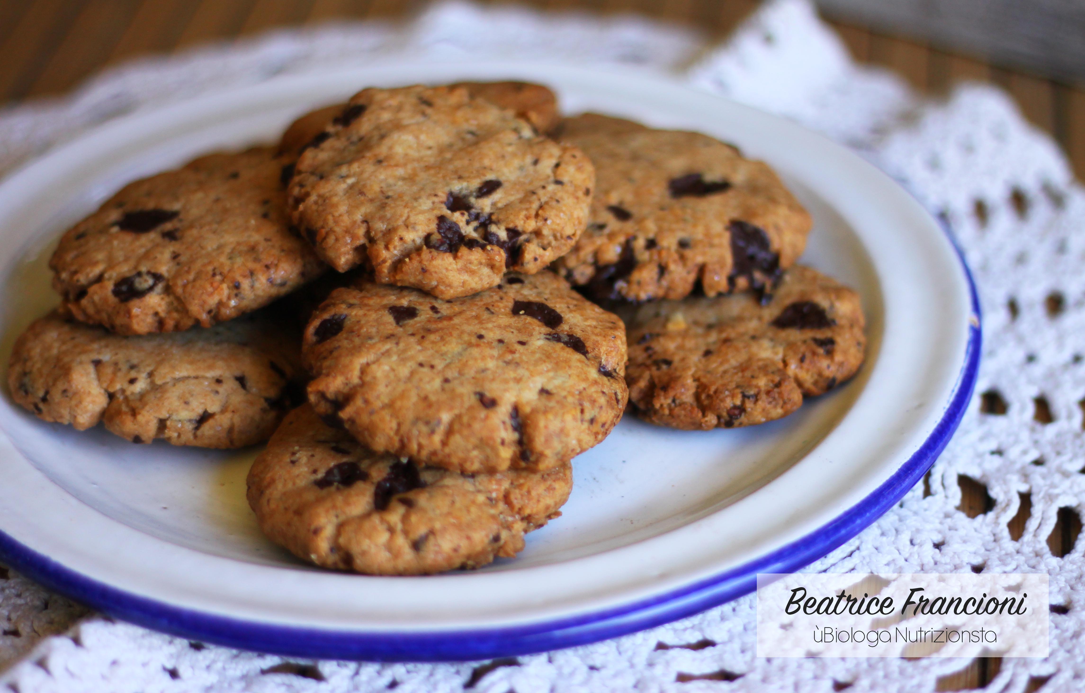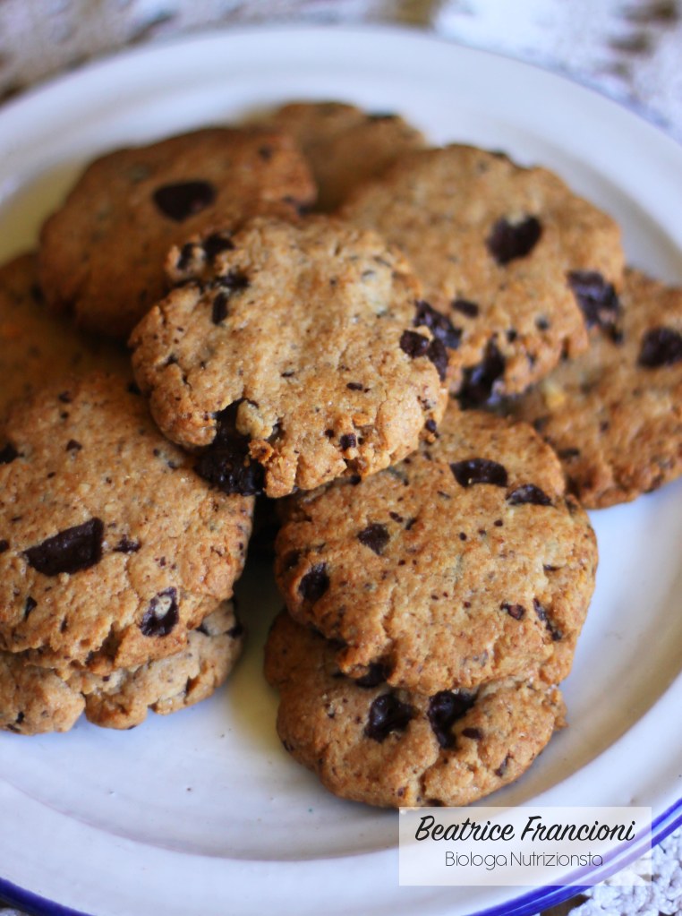 Ci sono due alternative: fare 15 biscotti da circa 130 kcal oppure 10 biscottoni da circa 200 kcal l’uno. Attenzione che nonostante gli ingredienti genuini questi biscotti non sono propriamente ‘light’ 😂 (come ogni cookie che si rispetti). Fatene buon uso 😜