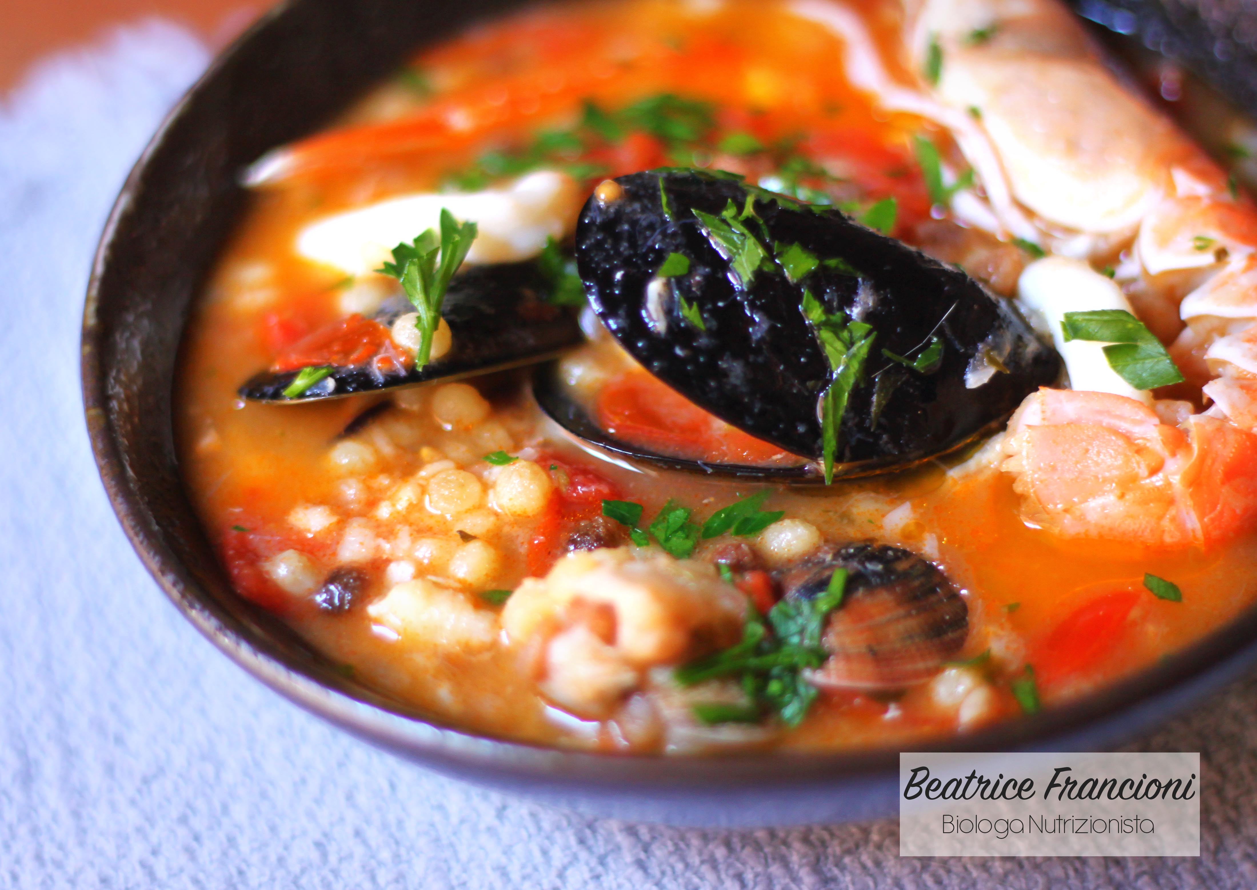 La fregola, anche detta cous cous sardo, è una lavorazione del frumento tipica della Sardegna. Eccola nella tipica preparazione a base di pesce 🐟🐚 .