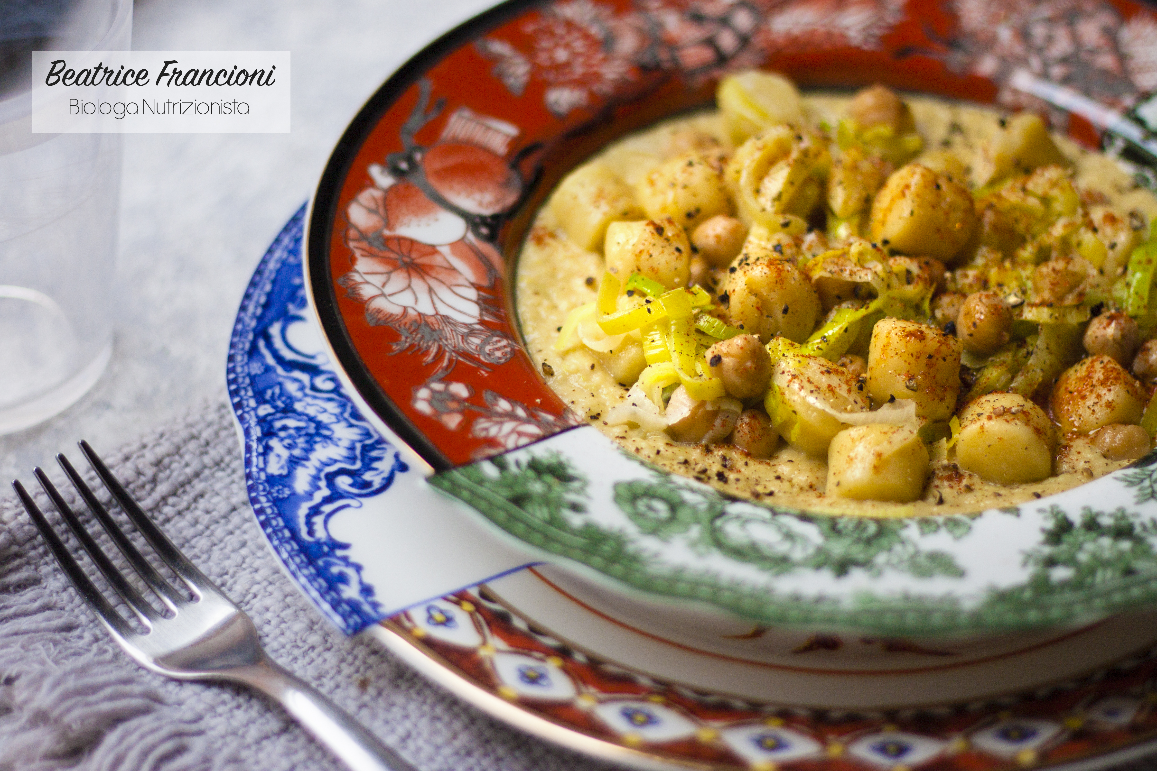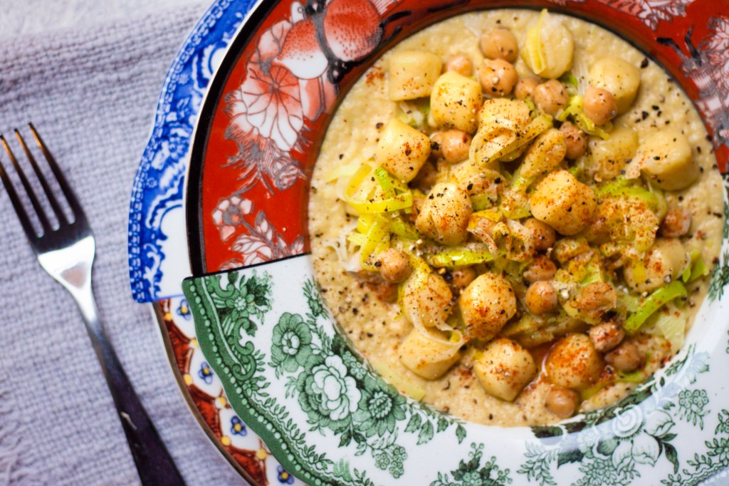 Gnocchi su crema di porri e ceci