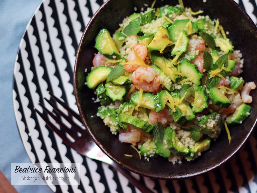 - Ho mescolato tutto con il cous cous aggiungendo scorza di limone grattugiata e foglioline di menta fresca.