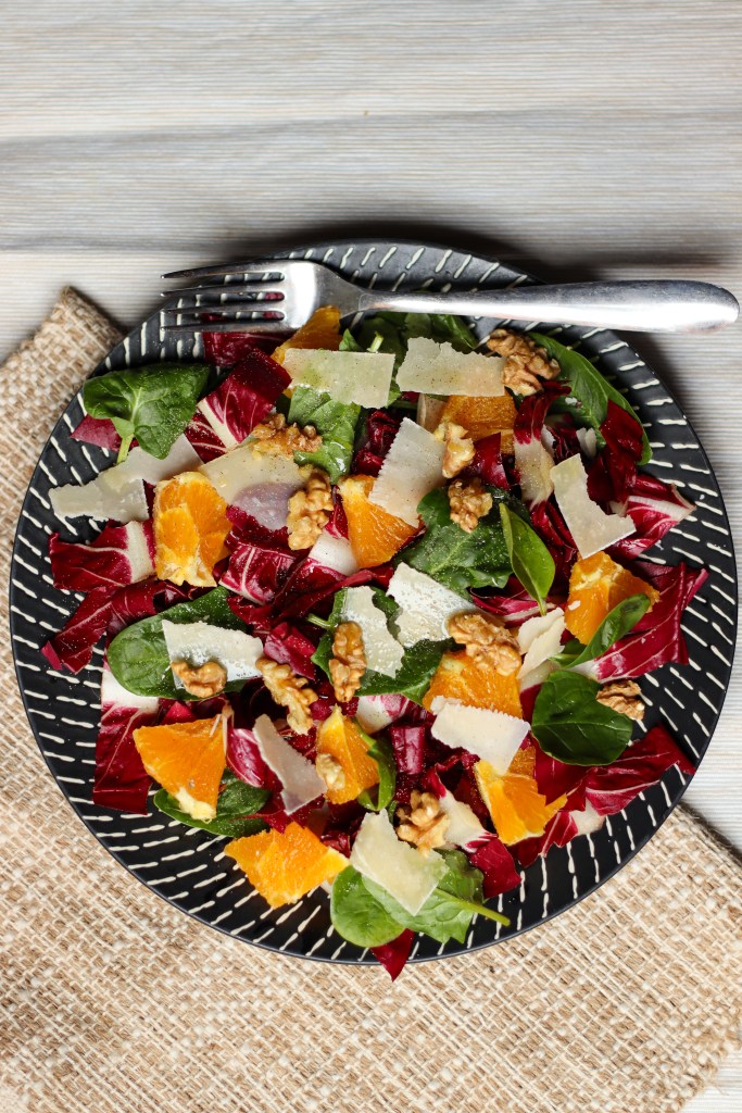 Con questa insalata facciamo il pieno di ferro vegetale e calcio. L’arancia infatti, fornendo vitamina C, cambia lo stato ossidativo del ferro veg contenuto soprattutto negli spinaci, rendendolo maggiormente assimilabile a livello intestinale.
